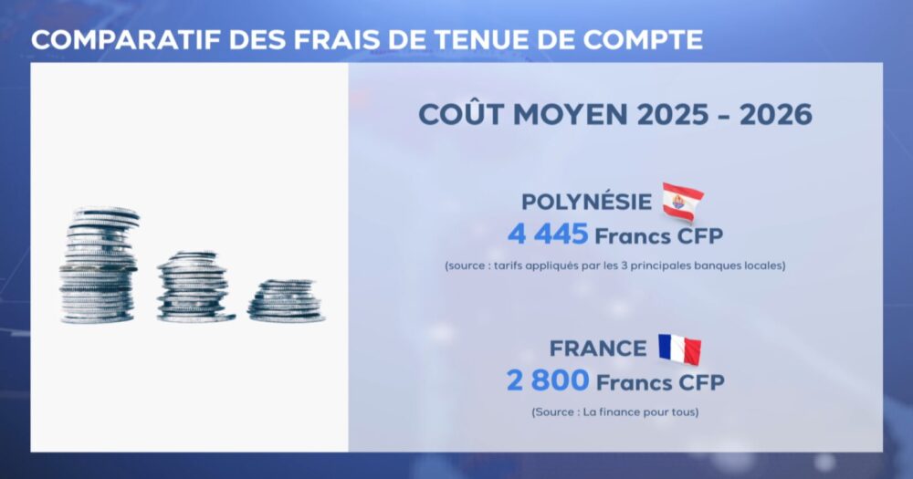 À l’image des frais des tenus de compte. Si en Polynésie le cout annuel moyen est de 4 445 Fcfp, dans l’hexagone ces frais s’élèvent à 3 000 Fcfp malgré une augmentation de près de 6% en 2026.