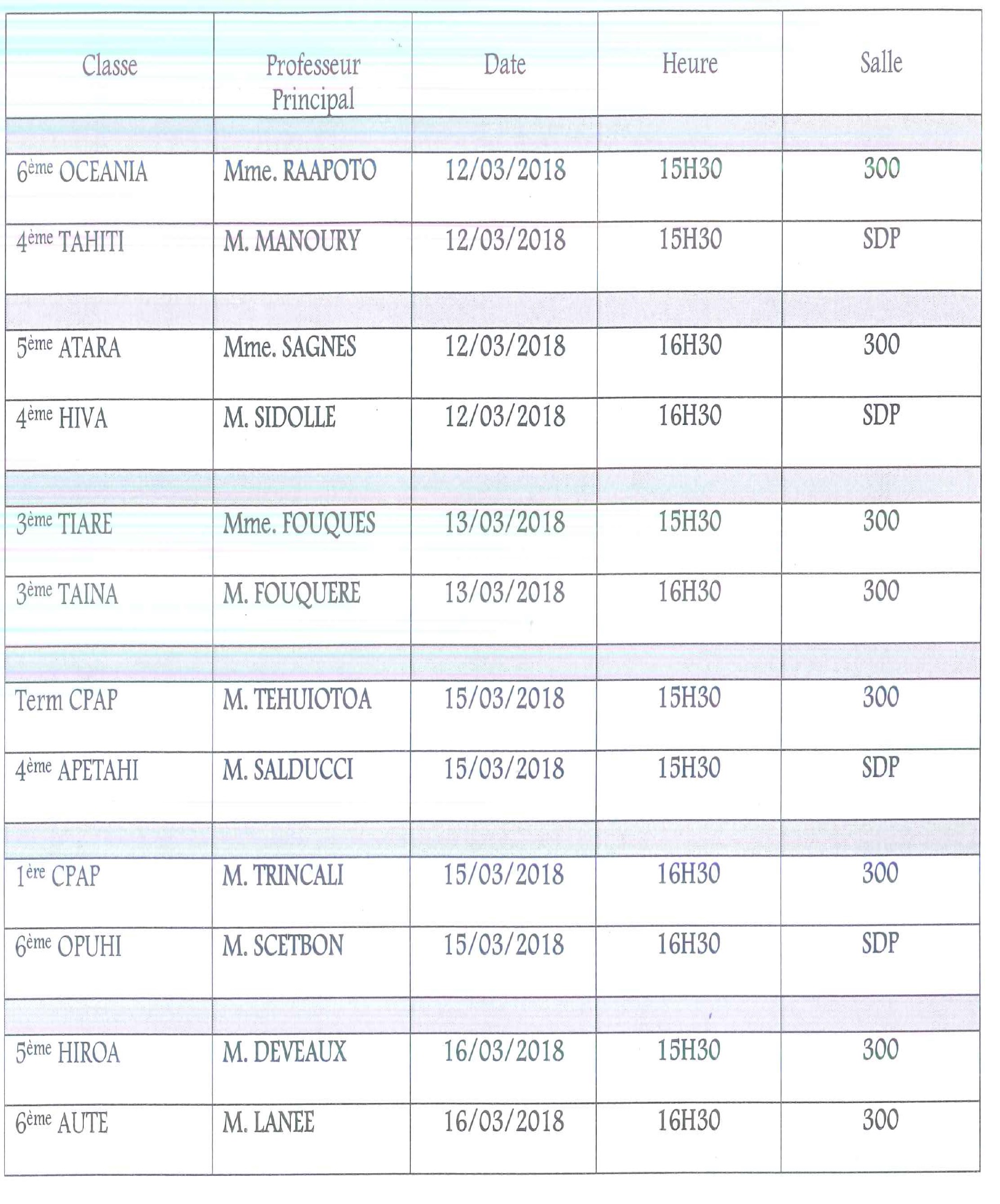 Voici le planning des conseils de classe du 2e Trimestre