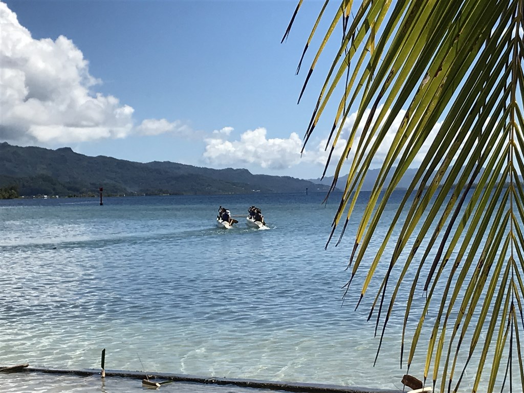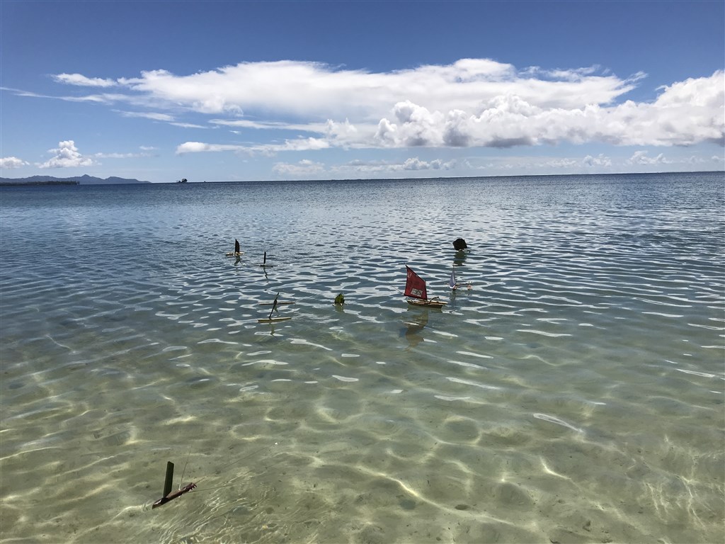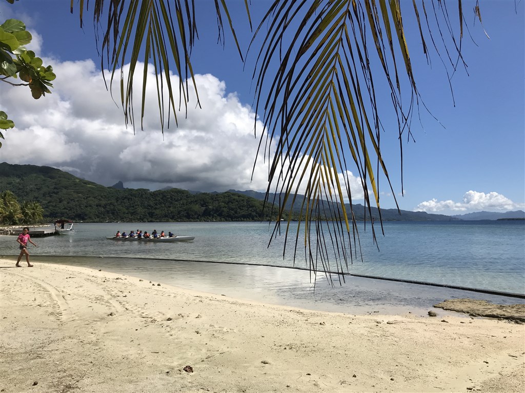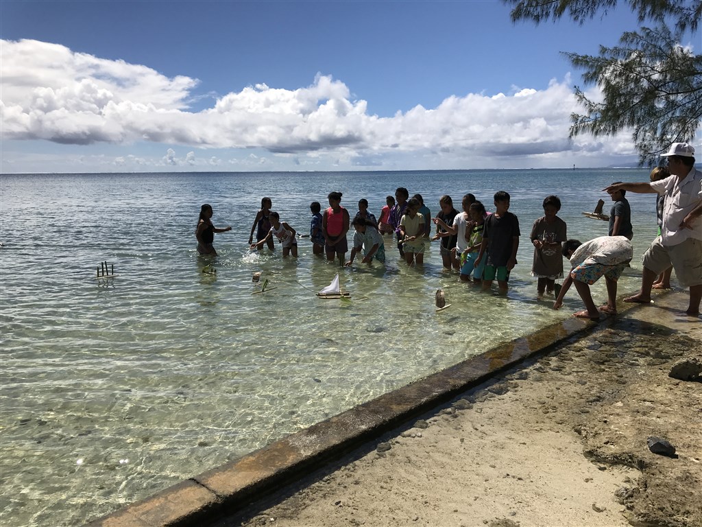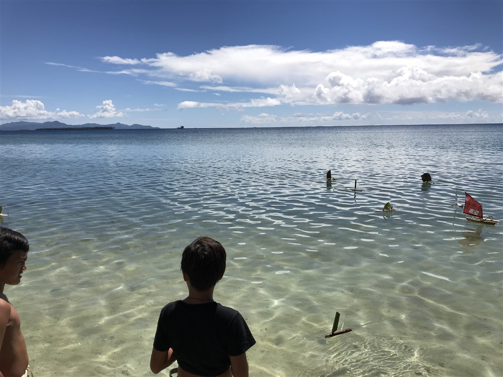 Les élèves se sont ensuite confrontés dans une course de pirogue double, tandis que d'autres mettaient leur titiraina dans le lagon. Certaines de ces pirogues maquettes réalisées les jours précédents par les élèves filaient hardiment dans le léger vent.