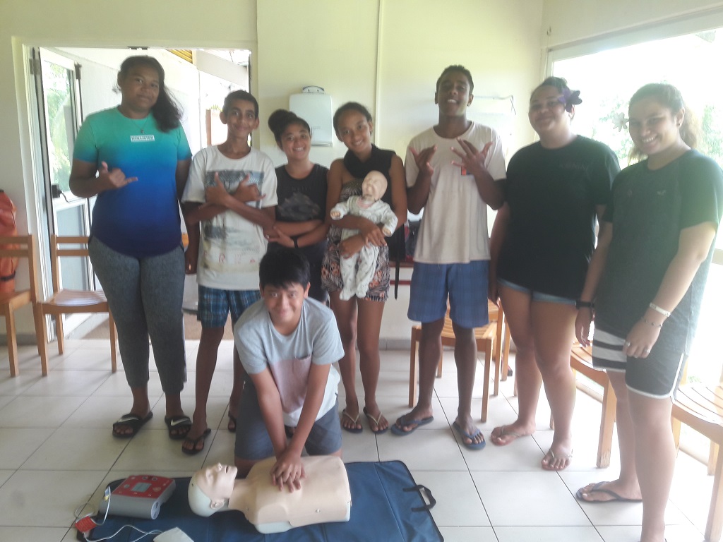 PSC1 .Premiers Secours Civiques 6 formations de 8h vont se dérouler lors de ce 3e trimestre pour tous les 3e du collège de Faaroa. La première session s'est très bien passée et tous ont validé leurs acquis. Ils recevront dans quelques mois leur diplôme.