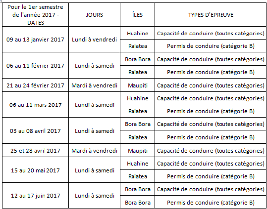 ArticleCalendrier prévisionnel des déplacements des inspecteurs pour les examens du permis de conduire et de la capacité de conduire - Année 201716 février 2017